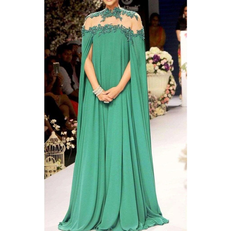 Be the first to review “A-Line Evening Gown Elegant Dress Formal Wedding Guest Red Green Dress Floor Length Sleeveless High Neck Fall Wedding Guest Chiffon with Appliques Pure Color”