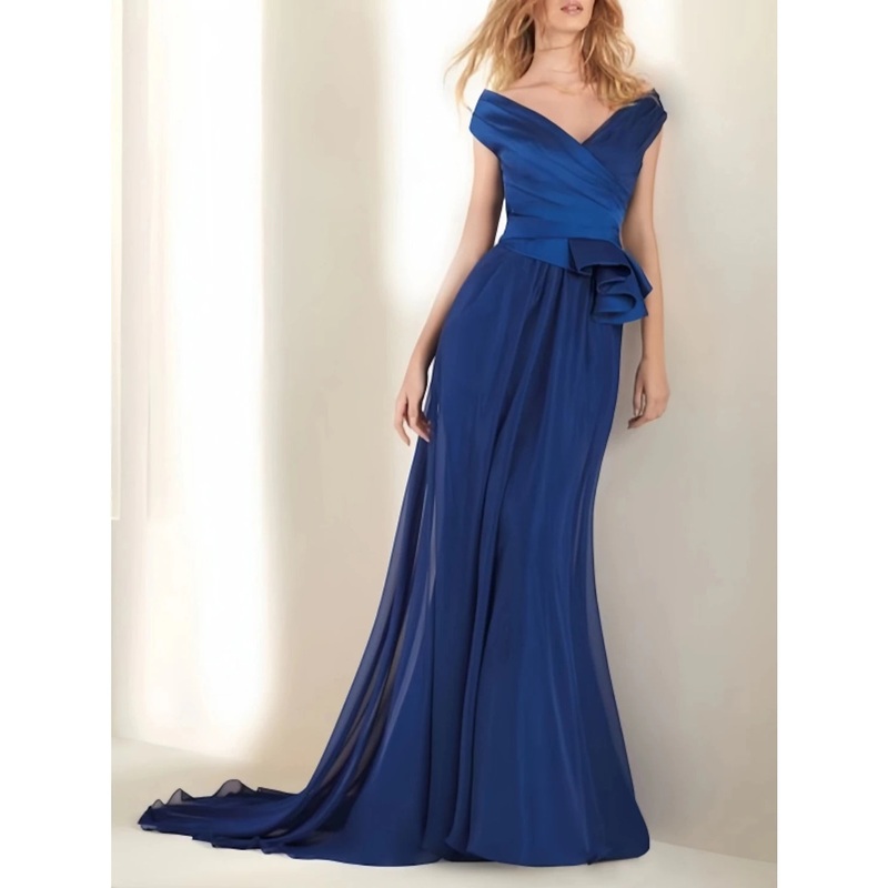 Be the first to review “A-Line Evening Gown Elegant Dress Formal Wedding Guest Sweep / Brush Train Short Sleeve Off Shoulder Satin with Pleats Ruched Ruffles” Cancel reply