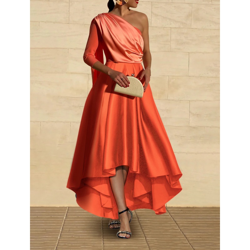 Be the first to review “A-Line Evening Gown Elegant Dress Formal Wedding Party Tea Length 3/4 Length Sleeve One Shoulder Fall Wedding Guest Satin with Ruched” Cancel reply