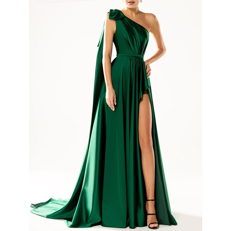 Be the first to review “A-Line Evening Gown Elegant Dress Party Wear Wedding Guest Court Train Sleeveless One Shoulder Nylon with Bow(s)”