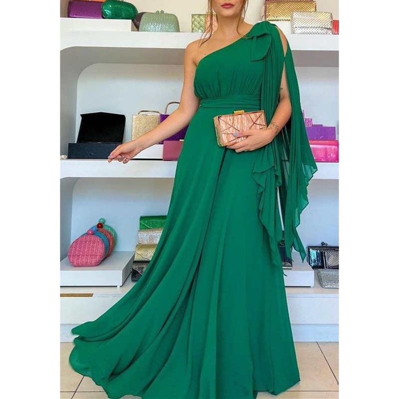 A-Line Evening Gown Party Dress Christmas Red Green Dress Elegant Formal Wedding Guest Sweep / Brush Train Sleeveless One Shoulder Capes Chiffon with Ruffles 2025