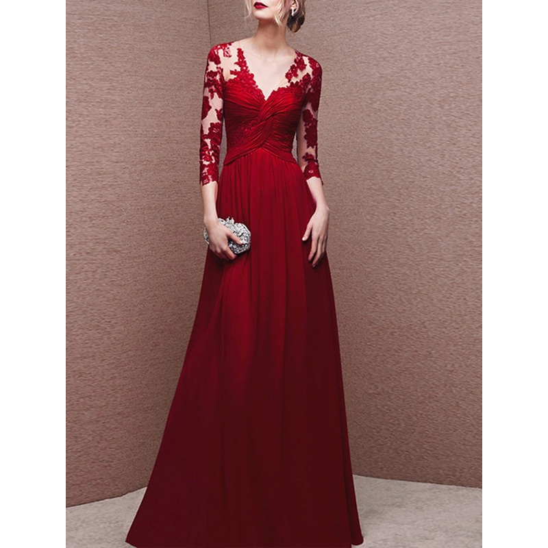 A-Line Evening Gown Party Dress Elegant Dress Formal Wedding Guest Floor Length 3/4 Length Sleeve V Neck Chiffon with Buttons Ruched Appliques 2025