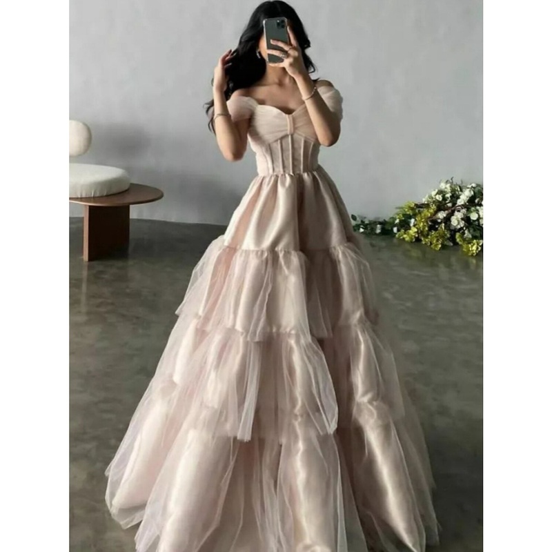 Be the first to review “A-Line Evening Gown Princess Dress Formal Floor Length Short Sleeve Off Shoulder Satin with Pleats”