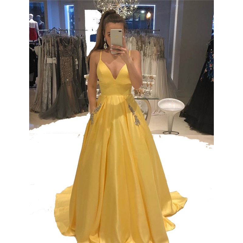 Be the first to review “A-Line Evening Gown Vintage Dress Party Wear Wedding Guest Sweep / Brush Train Sleeveless V Neck Satin with Crystals Beading”