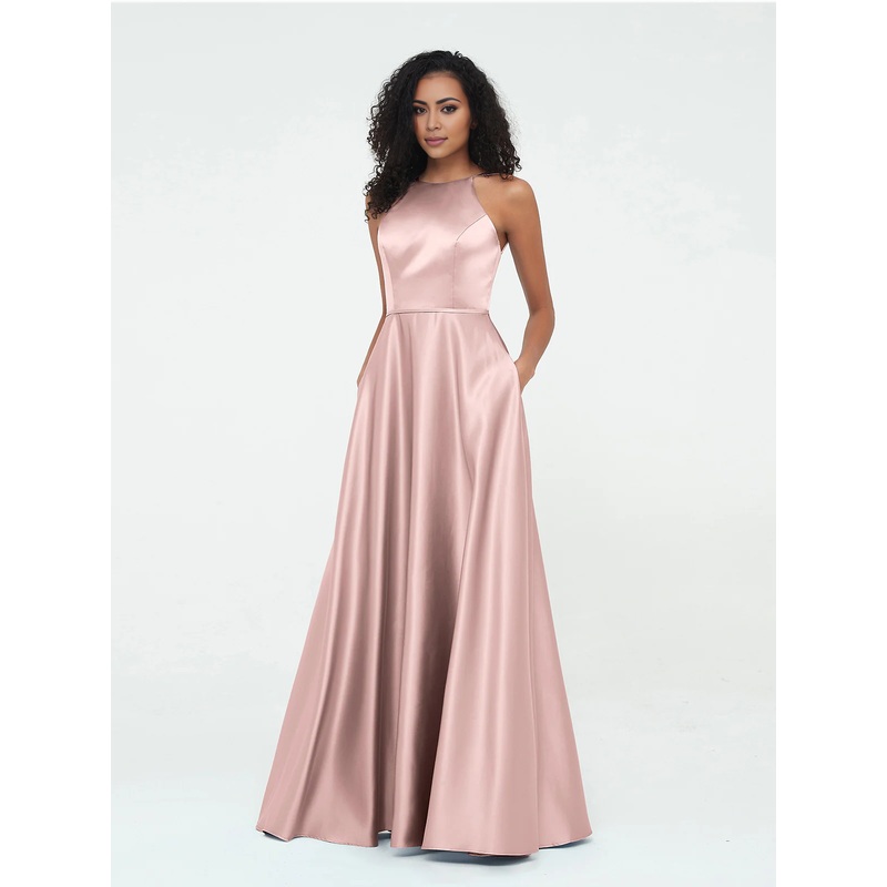 Be the first to review “A-line hanging neck large pocket satin dress”