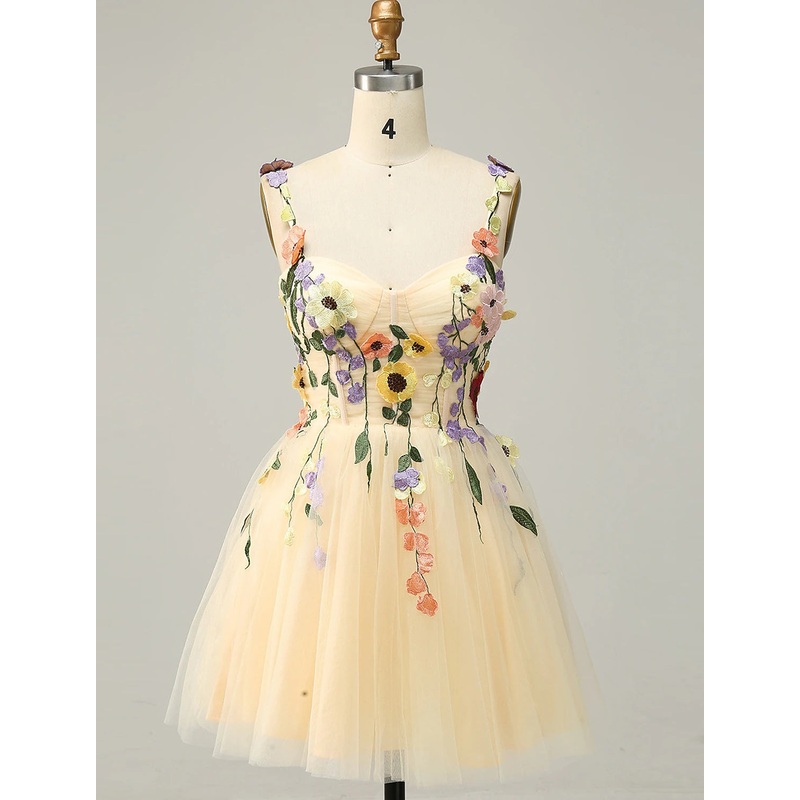 Be the first to review “A-Line Homecoming Dresses Floral Dress Cocktail Party Garden Party Short / Mini Sleeveless Spaghetti Strap Tulle with Appliques”