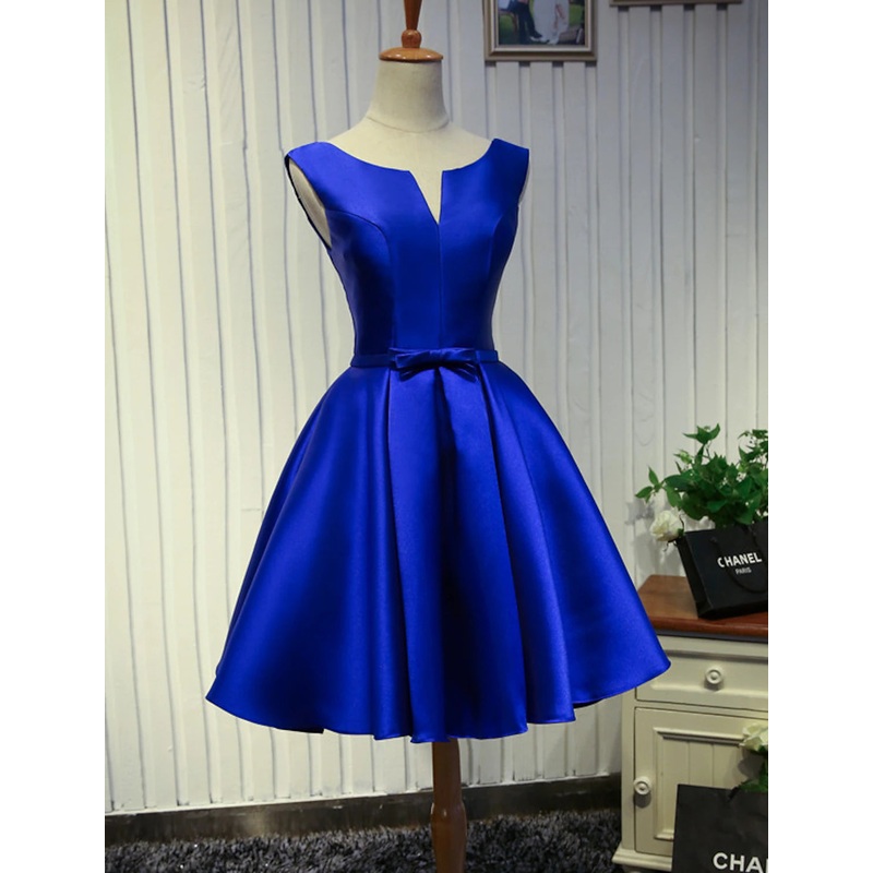 A-Line Homecoming Dresses Minimalist Dress Prom Birthday Knee Length Sleeveless Jewel Neck Satin Backless with Butterfly