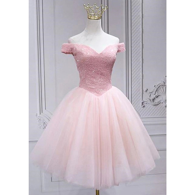 A-Line Homecoming Dresses Sparkle & Shine Dress Party Wear Cocktail Party Knee Length Sleeveless Off Shoulder Pink Dress Tulle with Sequin
