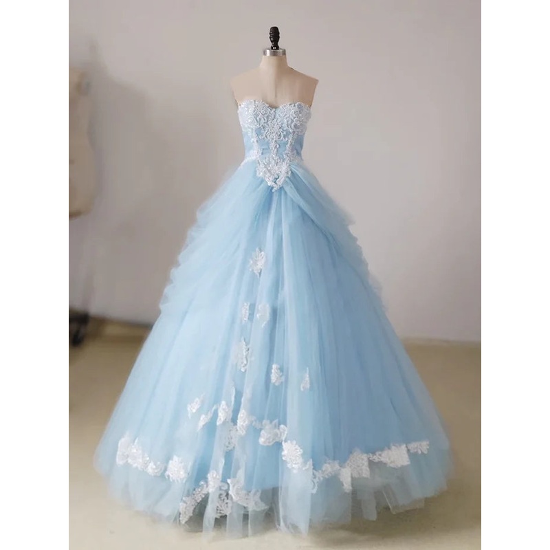 Be the first to review “A-line lace chicken heart collar blue long ball dress”