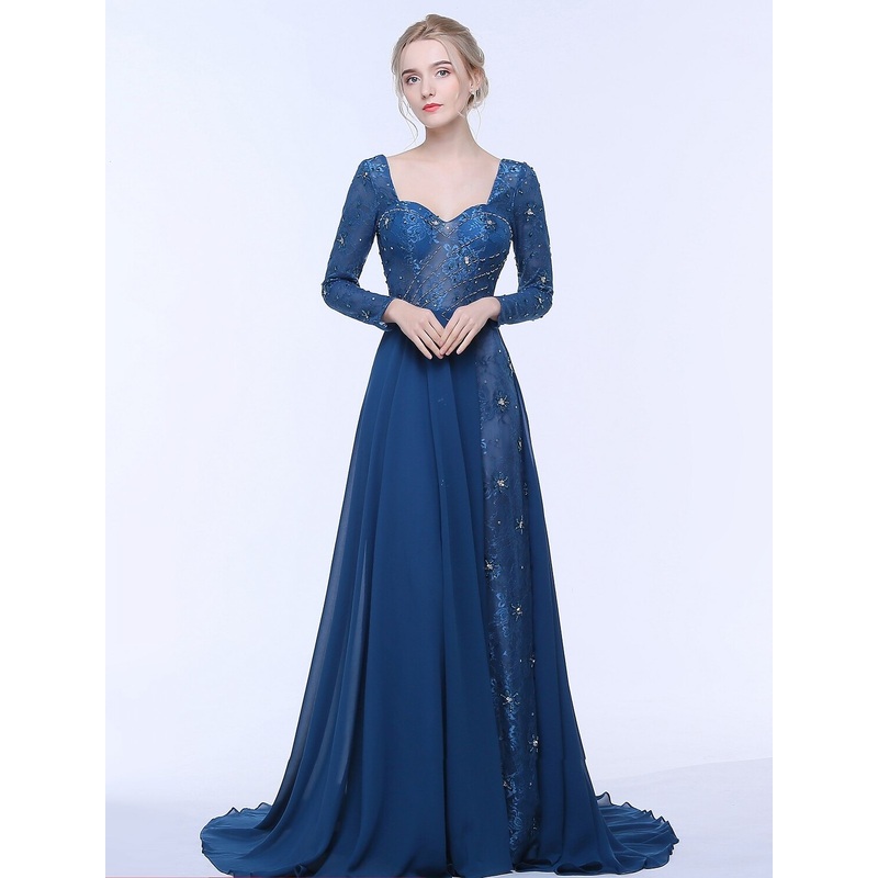 A-Line Mother of the Bride Dress Beautiful Back Open Back Elegant Sweetheart Court Train Chiffon Tulle Beaded Lace Long Sleeve No with Lace Ruched Crystals