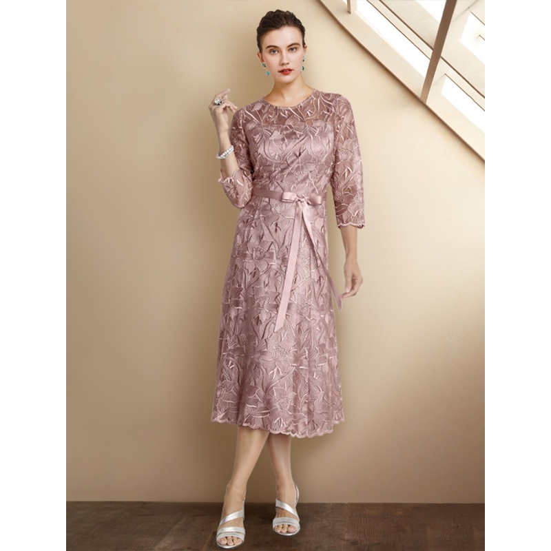 Be the first to review “A-Line Mother of the Bride Dress Elegant Jewel Neck Tea Length Lace Charmeuse 3/4 Length Sleeve with Sash / Ribbon Bow(s) Appliques”