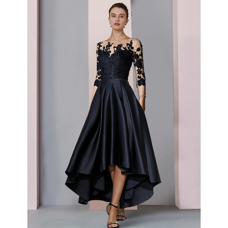 Be the first to review “A-Line Mother of the Bride Dress Fall Wedding Guest Elegant High Low Scoop Neck Asymmetrical Tea Length Satin Lace 3/4 Length Sleeve with Pleats Appliques”
