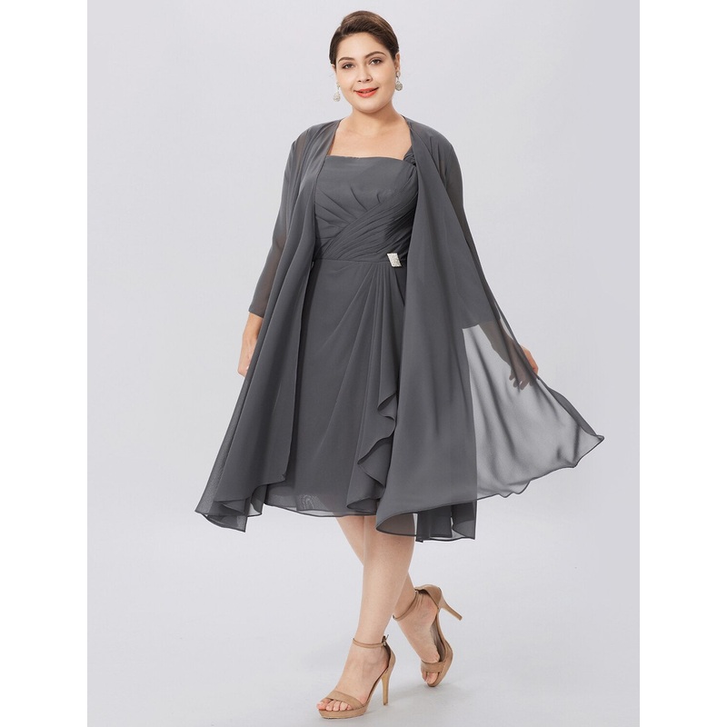 Be the first to review “A-Line Mother of the Bride Dress Formal Plus Size Elegant Straps Knee Length Chiffon Sleeveless yes with Criss Cross Pleats” Cancel reply
