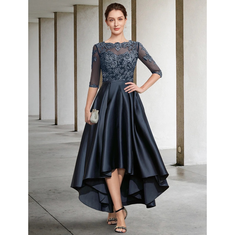 Be the first to review “A-Line Mother of the Bride Dress Formal Wedding Guest Elegant Jewel Neck Asymmetrical Lace Italy Satin Half Sleeve with Lace Pleats” Cancel reply