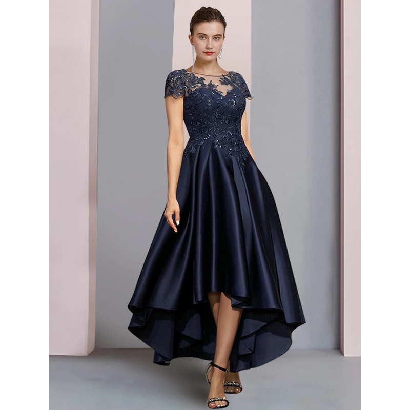 Be the first to review “A-Line Mother of the Bride Dress Formal Wedding Guest Party Elegant High Low Scoop Neck Asymmetrical Tea Length Satin Lace Half Sleeve with Sequin Appliques”