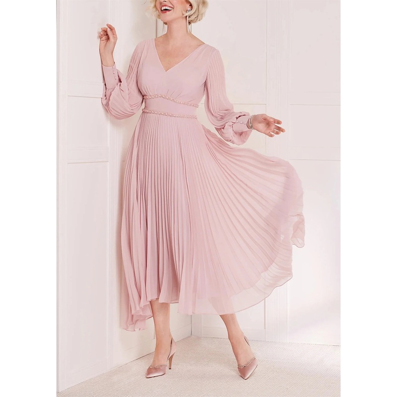 A-Line Mother of the Bride Dress Kentucky Derby Dresses Formal Wedding Guest Elegant Scoop Neck V Neck Tea Length Chiffon Long Sleeve with Crystals Ruching Solid Color