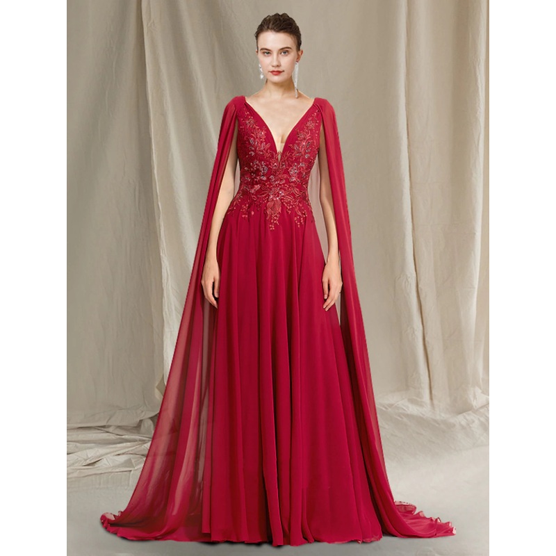 Be the first to review “A-Line Mother of the Bride Dress Plus Size Elegant V Neck Sweep / Brush Train Chiffon Lace Sleeveless with Pleats Sequin Appliques” Cancel reply