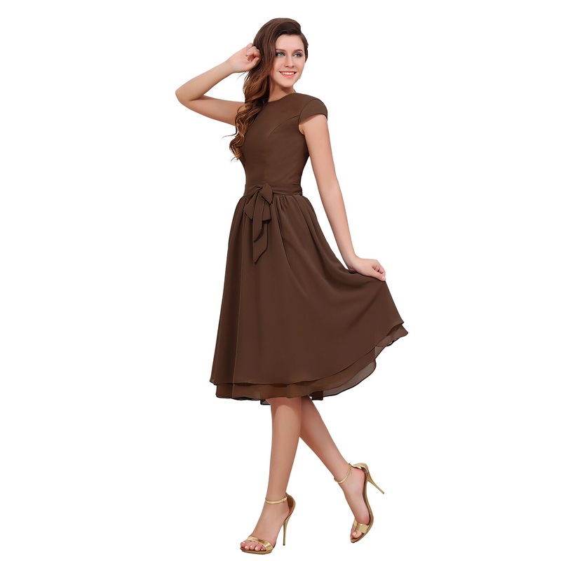 A-Line Mother of the Bride Dress Sweet Jewel Neck Knee Length Chiffon Short Sleeve with Buttons