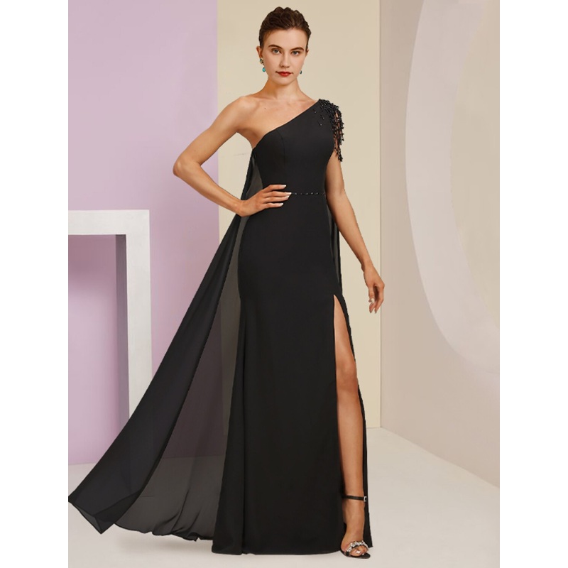 A-Line Mother of the Bride Dress Wedding Guest Vintage Elegant One Shoulder Floor Length Tea Length Chiffon Sleeveless with Sash / Ribbon Beading
