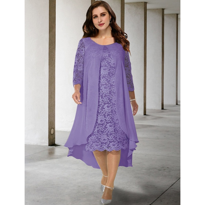 A-Line Mother of the Bride Dresses Plus Size Hide Belly Curve Elegant Dress Formal Knee Length Half Sleeve Off Shoulder Chiffon with Appliques