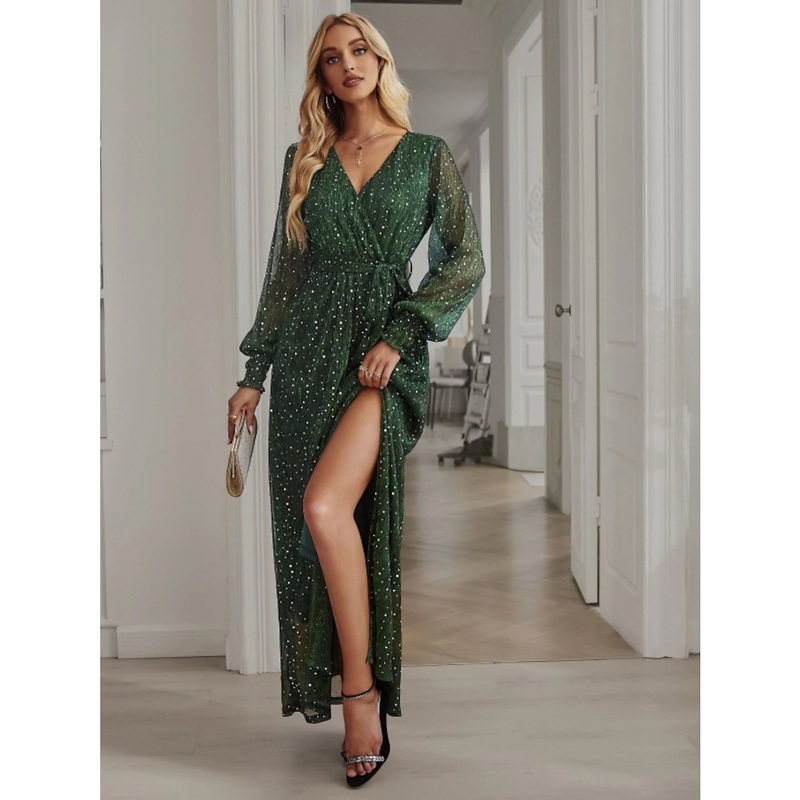 Be the first to review “A-Line Party Dresses Sparkle & Shine Dress Birthday Fall Ankle Length Long Sleeve V Neck Chiffon with Glitter Sequin Slit”