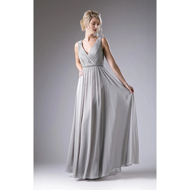 A-line pleated long V-neck chiffon dress