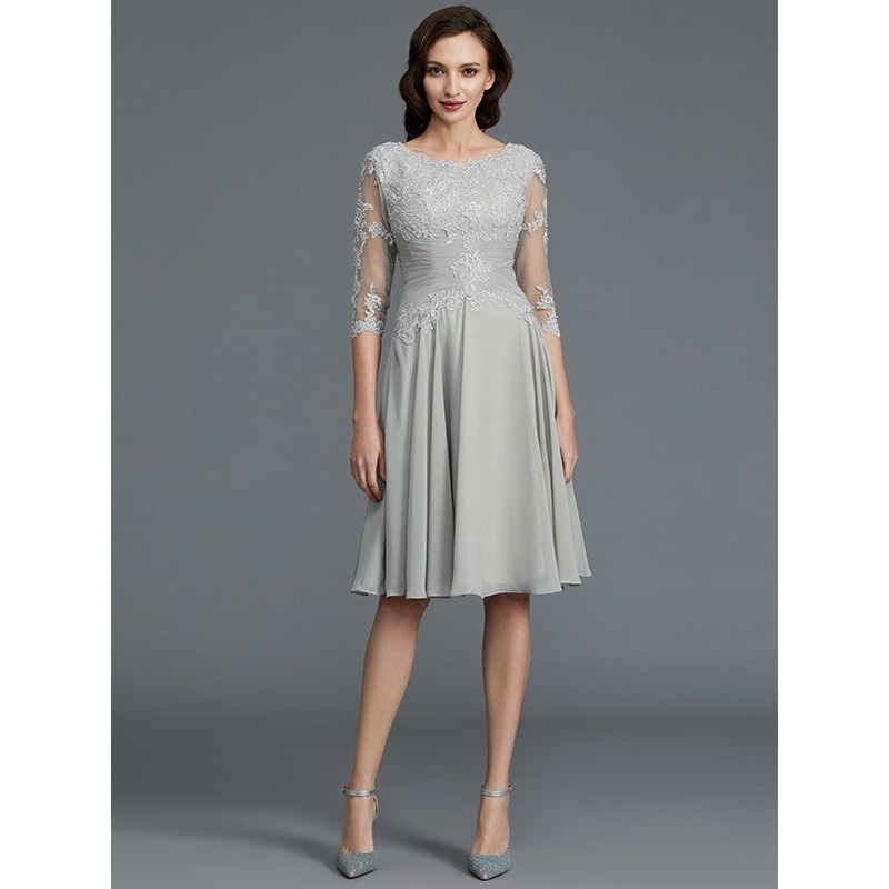 A-Line/Princess 1/2 Sleeves Scoop Knee-Length Applique Chiffon Mother of the Bride Dresses