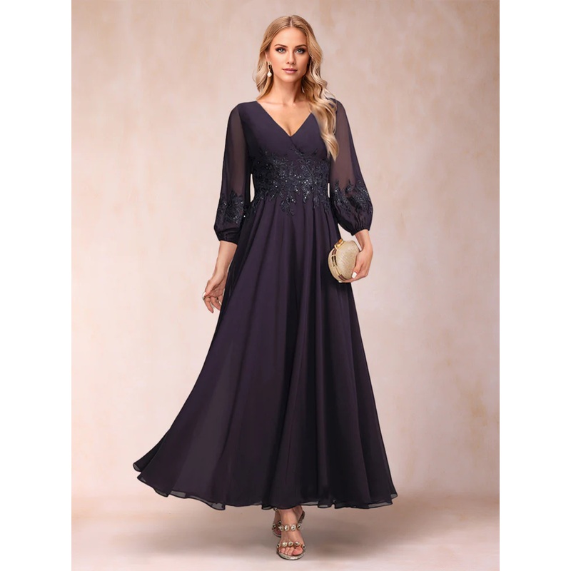 A-line princess and ankle 3/4 sleeve V-neck mother of the bride dress