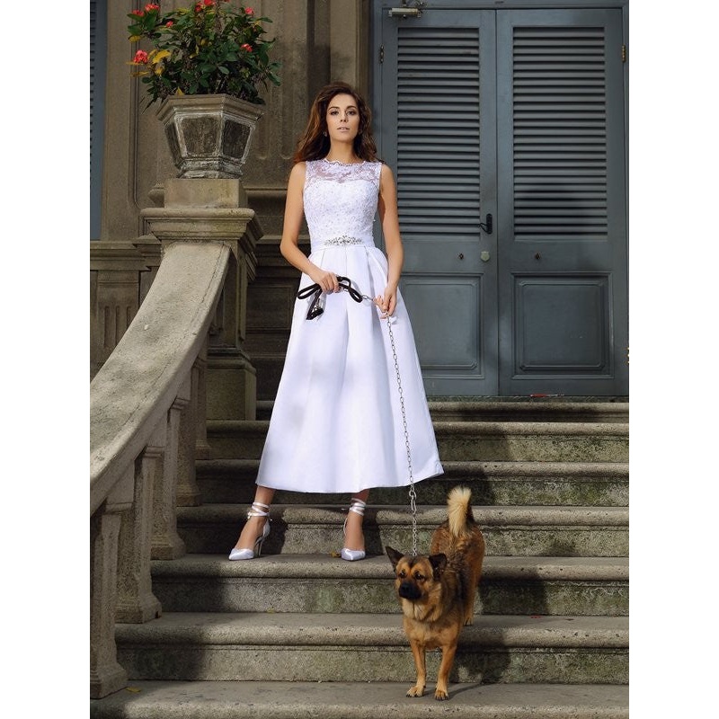 Be the first to review “A-Line/Princess Bateau Applique Sleeveless Long Satin Wedding Dresses”