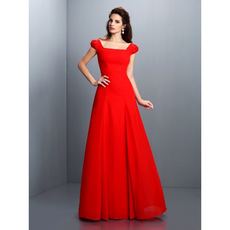 A-Line/Princess Bateau Short Sleeves Long Satin Dresses