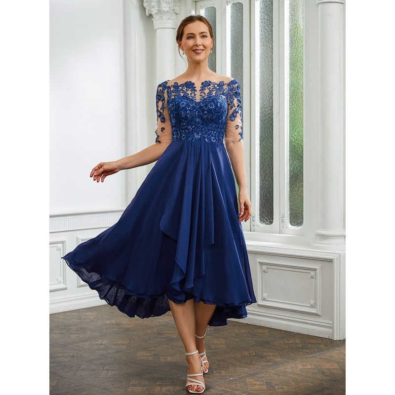 A-Line/Princess Chiffon Applique Bateau 1/2 Sleeves Tea-Length Mother of the Bride Dresses
