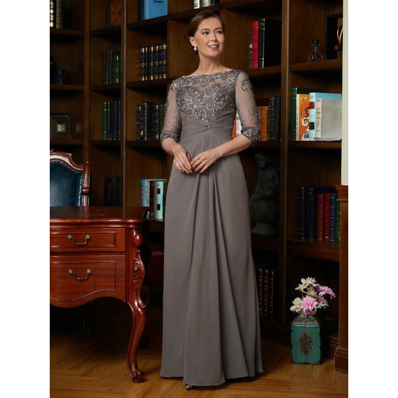 A-Line/Princess Chiffon Applique Scoop 3/4 Sleeves Floor-Length Mother of the Bride Dresses