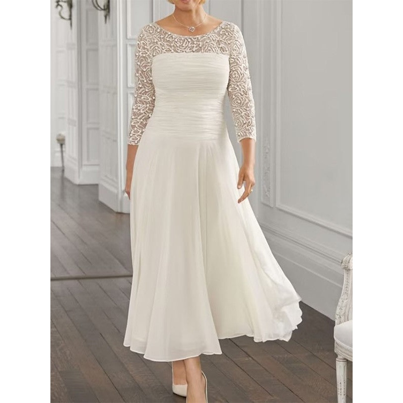 A-Line/Princess Chiffon Applique Scoop 3/4 Sleeves Tea-Length Mother of the Bride Dresses