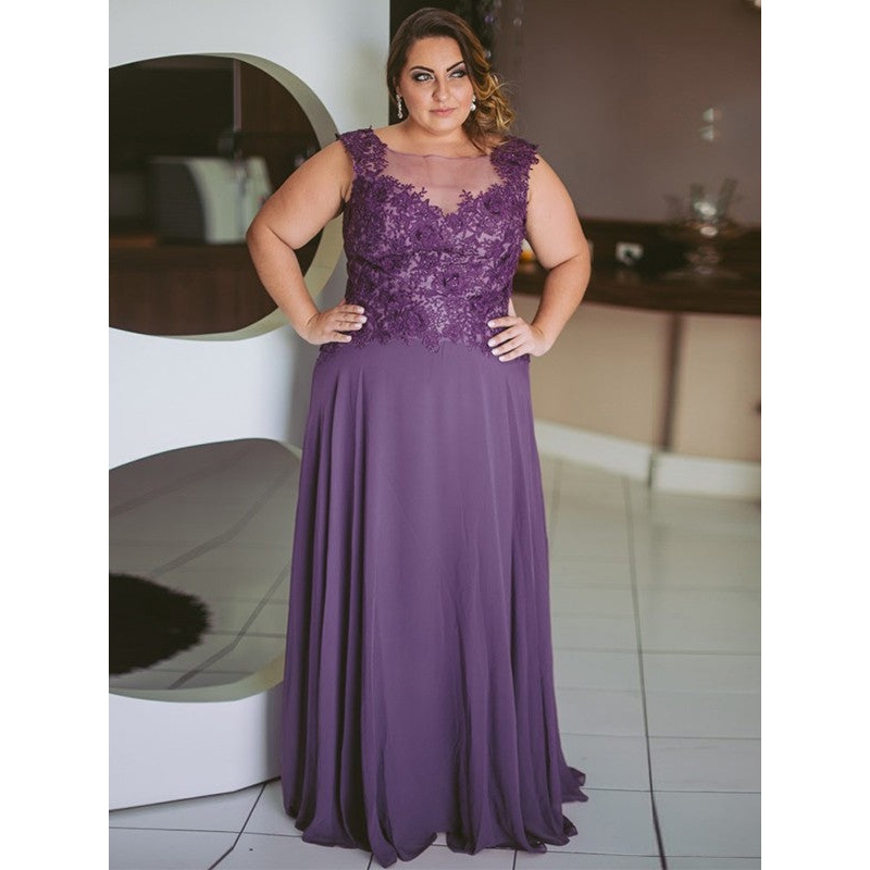 A-Line/Princess Chiffon Applique Scoop Sleeveless Floor-Length Mother of the Bride Dresses