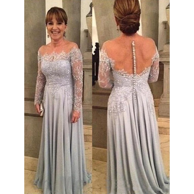A-Line/Princess Chiffon Lace Scoop Long Sleeves Sweep/Brush Train Mother of the Bride Dresses