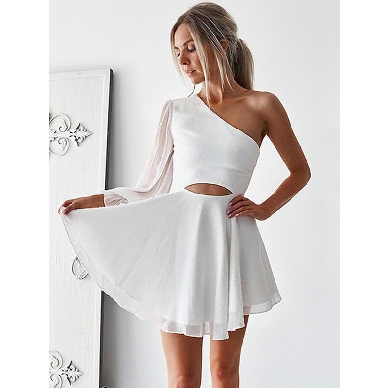 A-Line/Princess Chiffon One-Shoulder Long Sleeves Ruffles Short/Mini Dresses