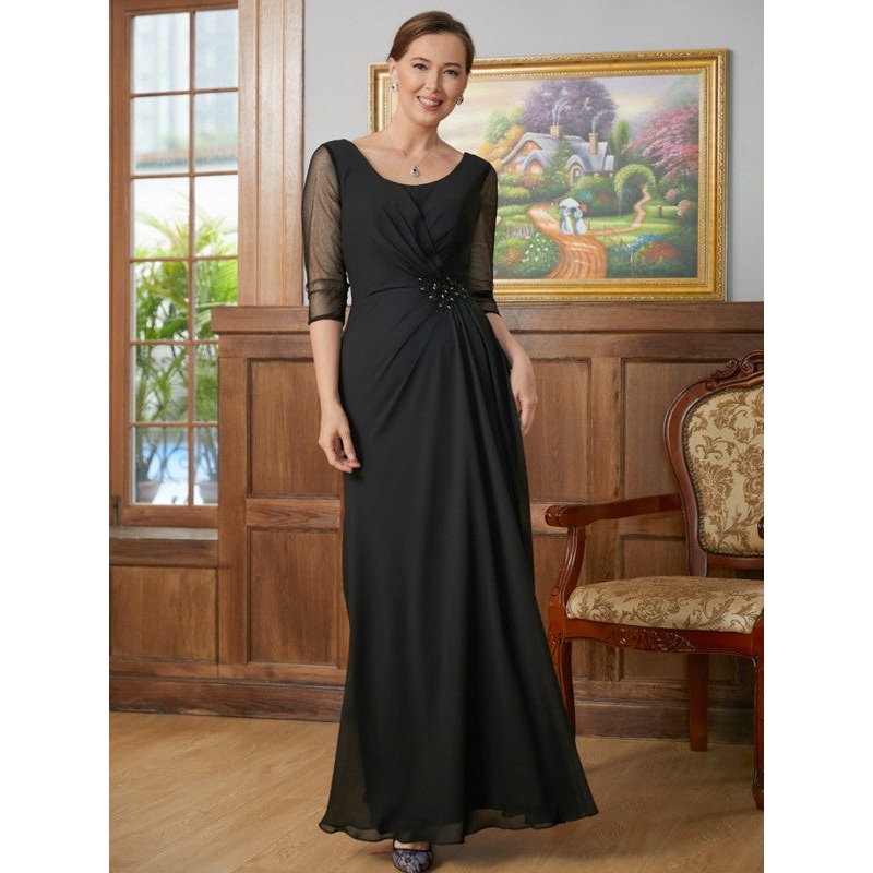 A-Line/Princess Chiffon Ruched Scoop 3/4 Sleeves Floor-Length Mother of the Bride Dresses