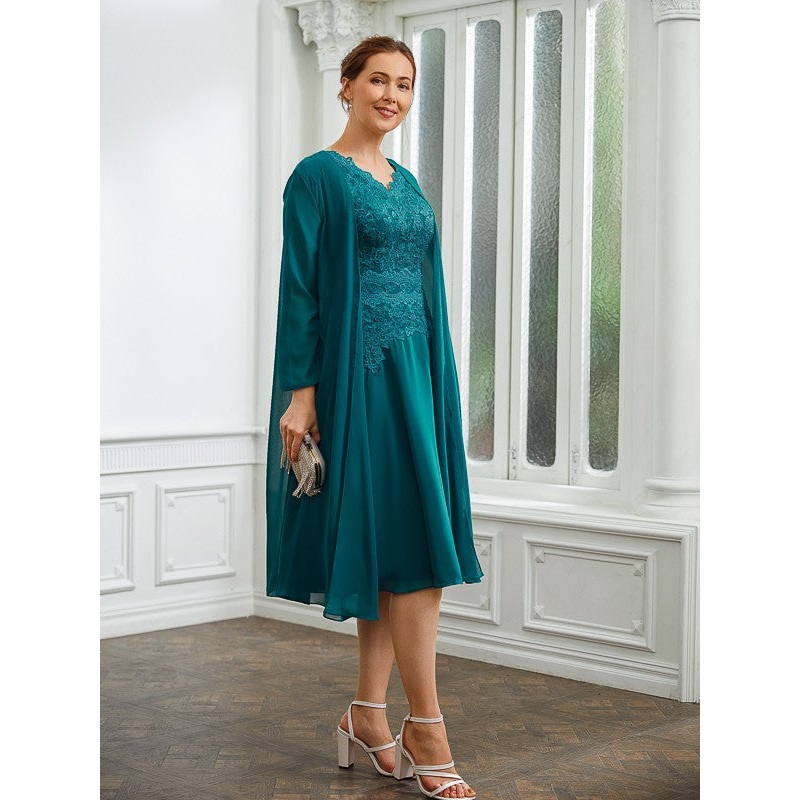 A-Line/Princess Chiffon Ruched V-neck Short Sleeves Knee-Length Mother of the Bride Dresses