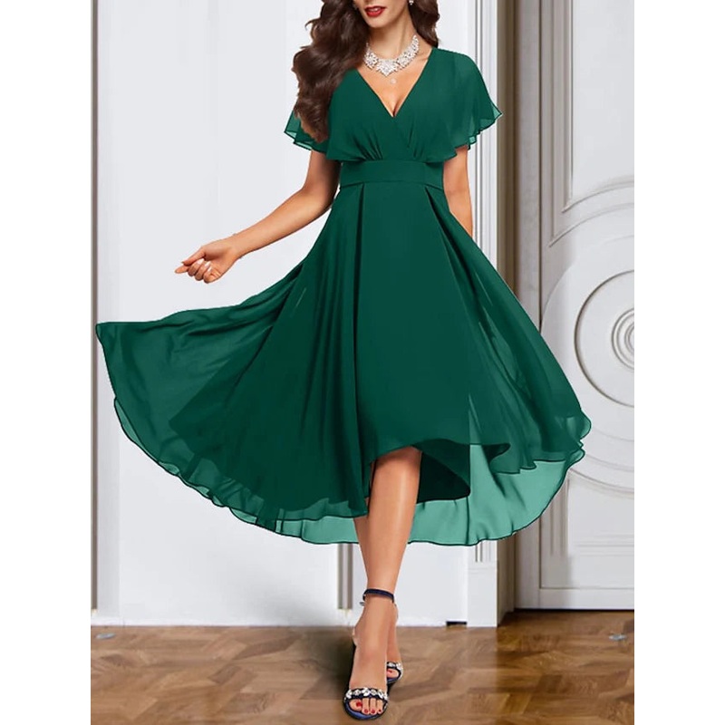 A-line/Princess Chiffon V-neck Short sleeved mother of the bride dress