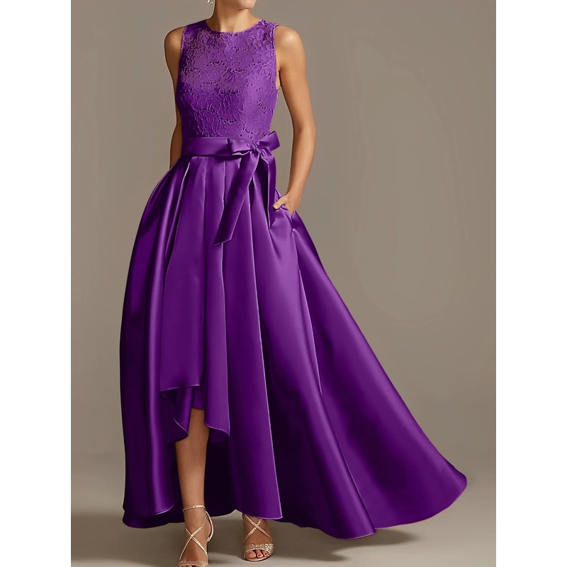 A-line/Princess collar sleeveless pleated lace mother of the bride dress