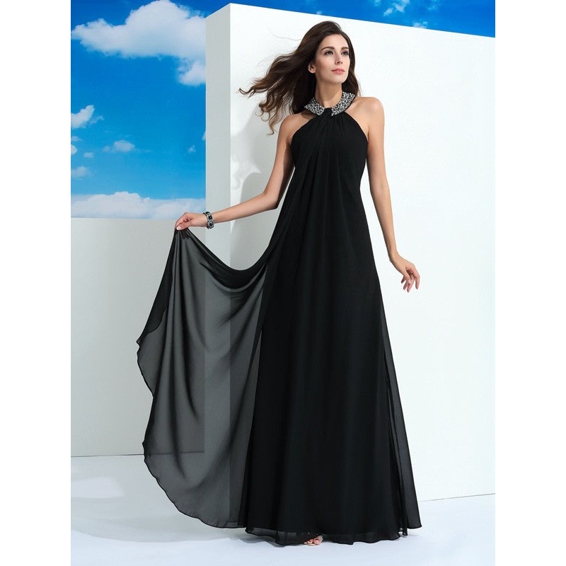 A-Line/Princess Halter Beading Sleeveless Long Chiffon Dresses