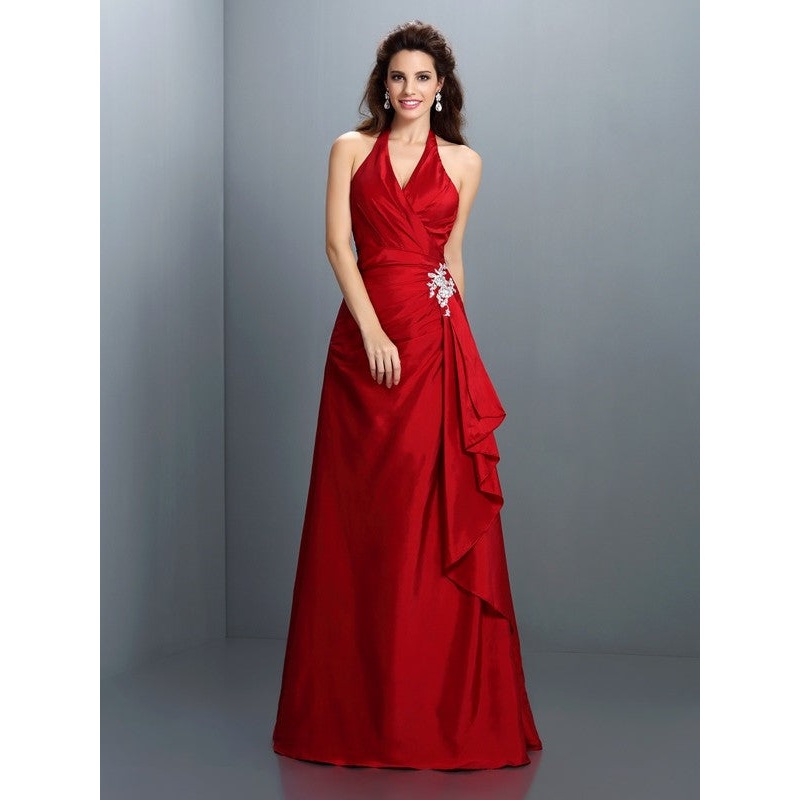 A-Line/Princess Halter Beading Sleeveless Long Taffeta Dresses