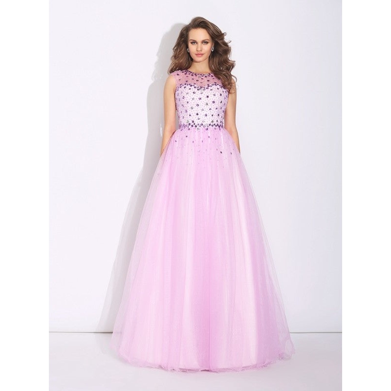 A-Line/Princess Jewel Rhinestone Sleeveless Long Net Dresses