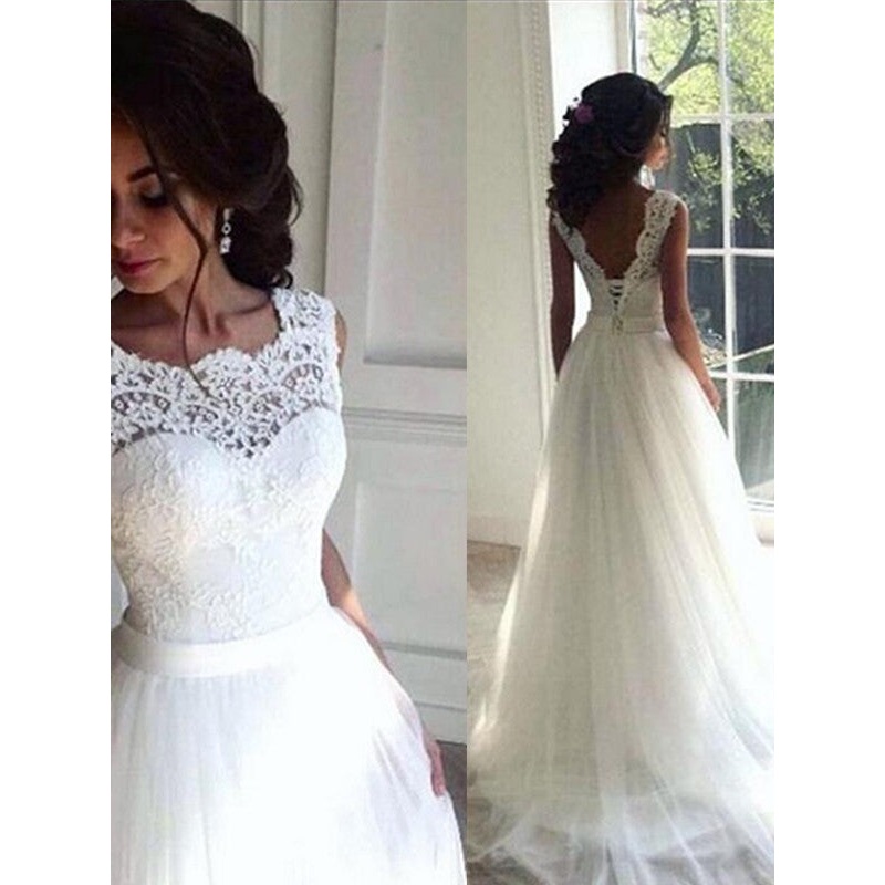 A-Line/Princess Lace Sash/Ribbon/Belt Tulle Bateau Sleeveless Sweep/Brush Train Wedding Dresses
