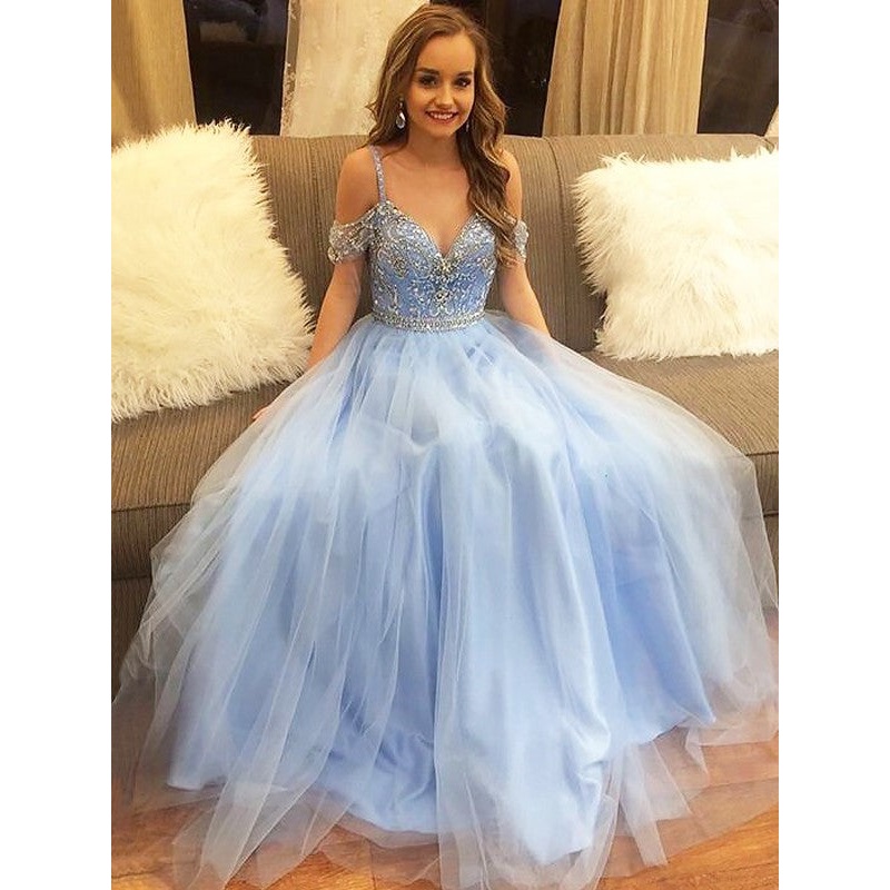 Be the first to review “A-Line/Princess Off-the-Shoulder Floor-Length Tulle Sleeveless Beading Dresses”