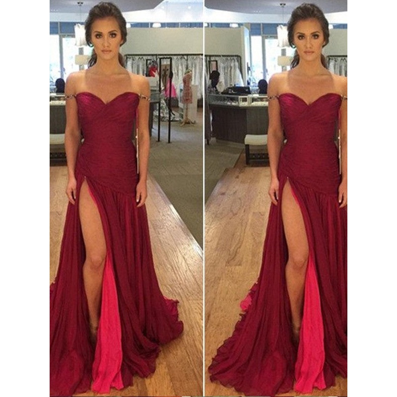 Be the first to review “A-Line/Princess Off-the-Shoulder Sleeveless Sweep/Brush Train Chiffon Dresses”