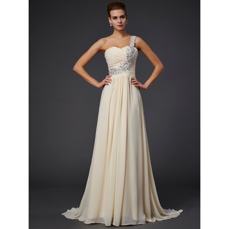 A-Line/Princess One-Shoulder Sleeveless Beading Applique Long Chiffon Dresses