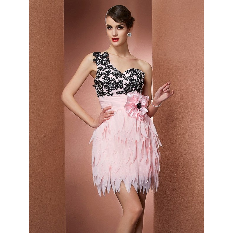 A-Line/Princess One-Shoulder Sleeveless Hand-Made Flower Short Chiffon Homecoming Dresses