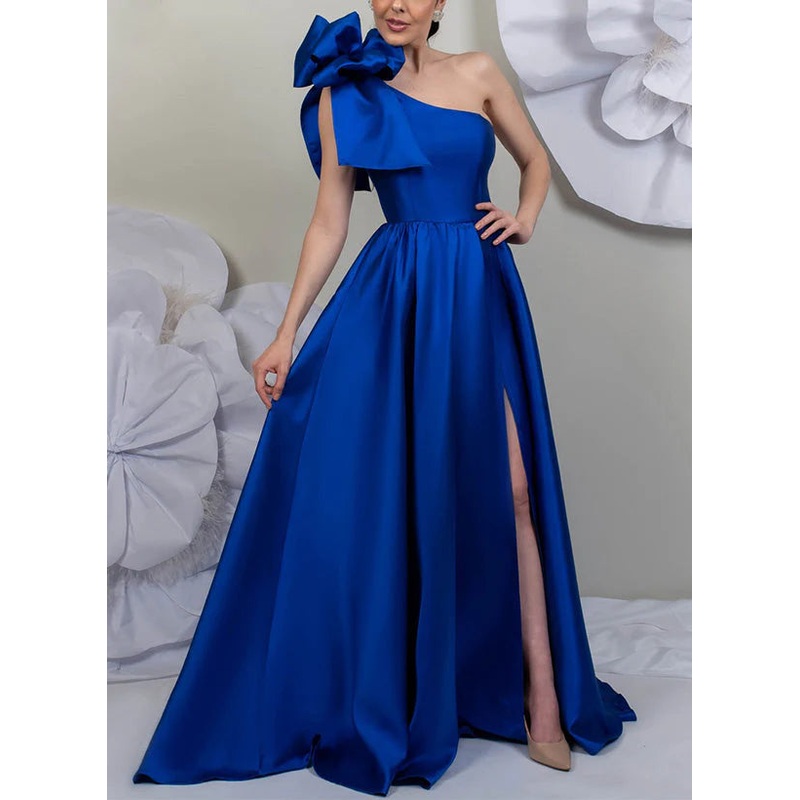 A-line/Princess One shoulder Sleeveless Satin Split Mother of the bride dress