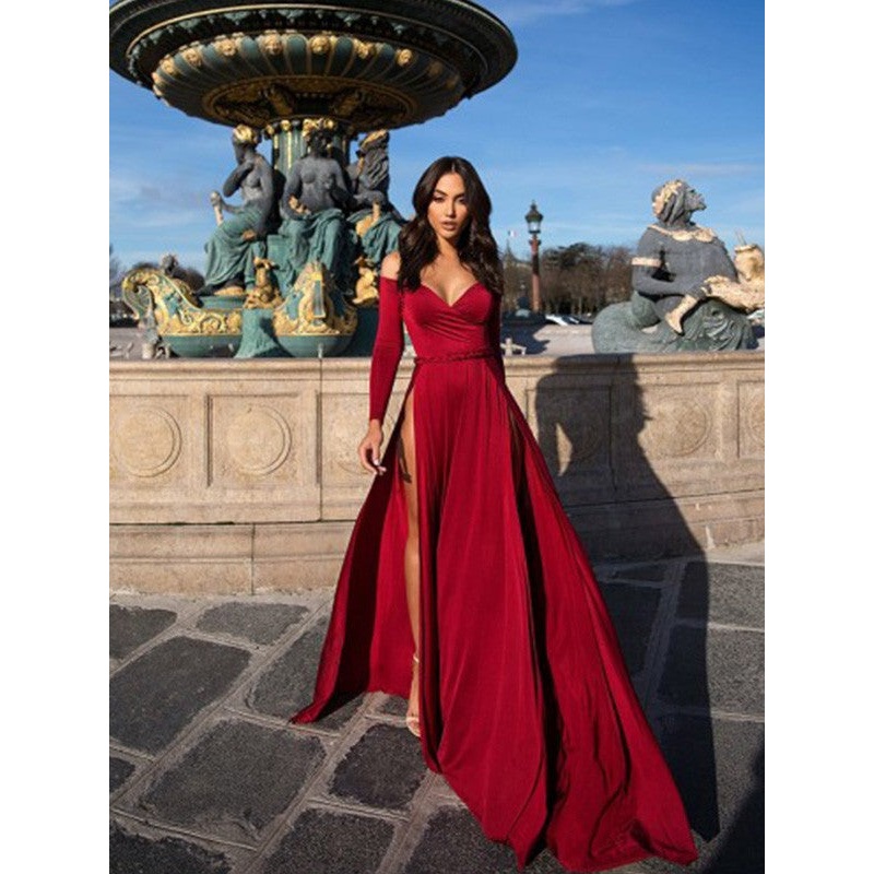 A-Line/Princess Ruched Off-the-Shoulder Long Sleeves Sweep/Brush Train Spandex Dresses